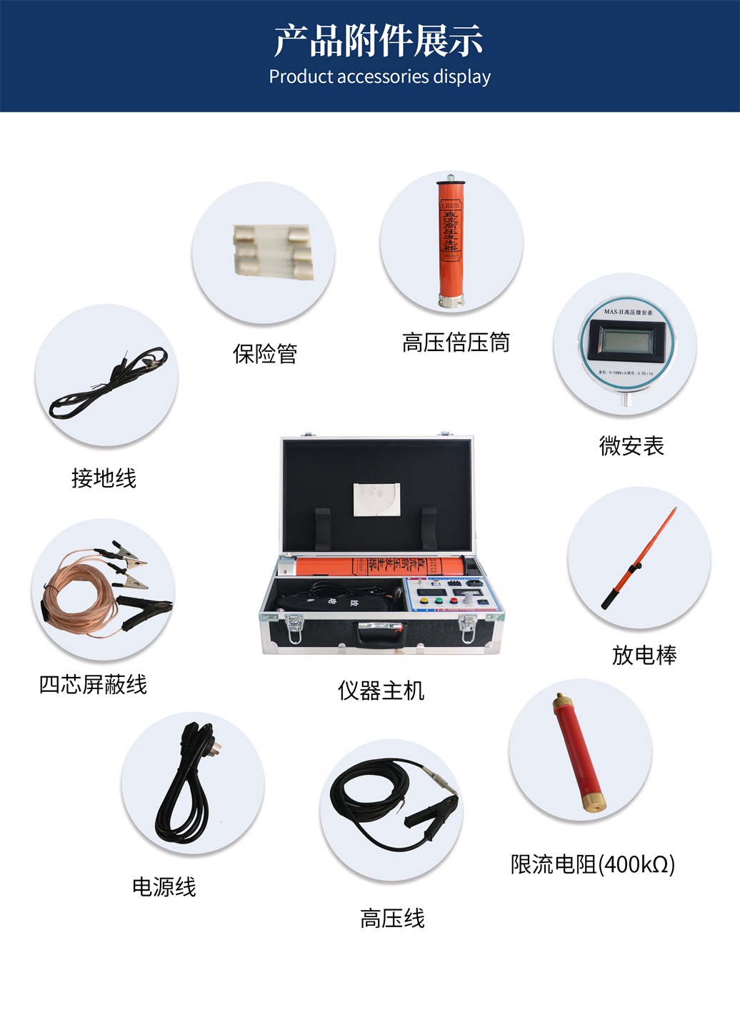 本儀器適用于對氧化鋅避雷器、電力電纜、變壓器、斷路器、發電機等高壓電氣設備進行直流耐壓試驗或直流泄漏電流試驗。參考標準:DL/T 848.1-2004,DL/T 474.2-2018