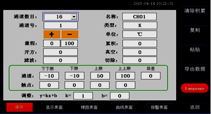 調整:對通道值的修正調整,使其顯示理想的數值。通過調整k值來調整溫度的倍數(乘除),調整b值可以調整數值的正負值的大小。