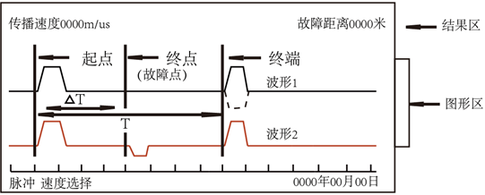 電纜故障測試系統主界面分三個區,上方為計算參數與結果區,如圖9所示。中間為波形顯示(采樣前為接線圖)區,根據需要可顯示一條或兩條波形。同時顯示豎線光標和時間刻度。