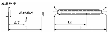 電纜故障測(cè)試系統(tǒng)測(cè)量電纜故障時(shí),電纜可視為一條均勻分布的傳輸線,在電纜一端加脈沖電壓,則此脈沖按一定的速度(決定于電纜介質(zhì)電常數(shù)和導(dǎo)磁系數(shù))沿線傳輸,當(dāng)脈沖遇到故障點(diǎn)(或阻抗不均勻點(diǎn))就會(huì)發(fā)生反射,用閃測(cè)儀記錄下發(fā)送脈沖和反射脈沖之間的傳輸時(shí)間△T,則可按已知的傳輸速度V來(lái)計(jì)算出故障的距離Lx,Lx=V·△T/2,如圖10所示。