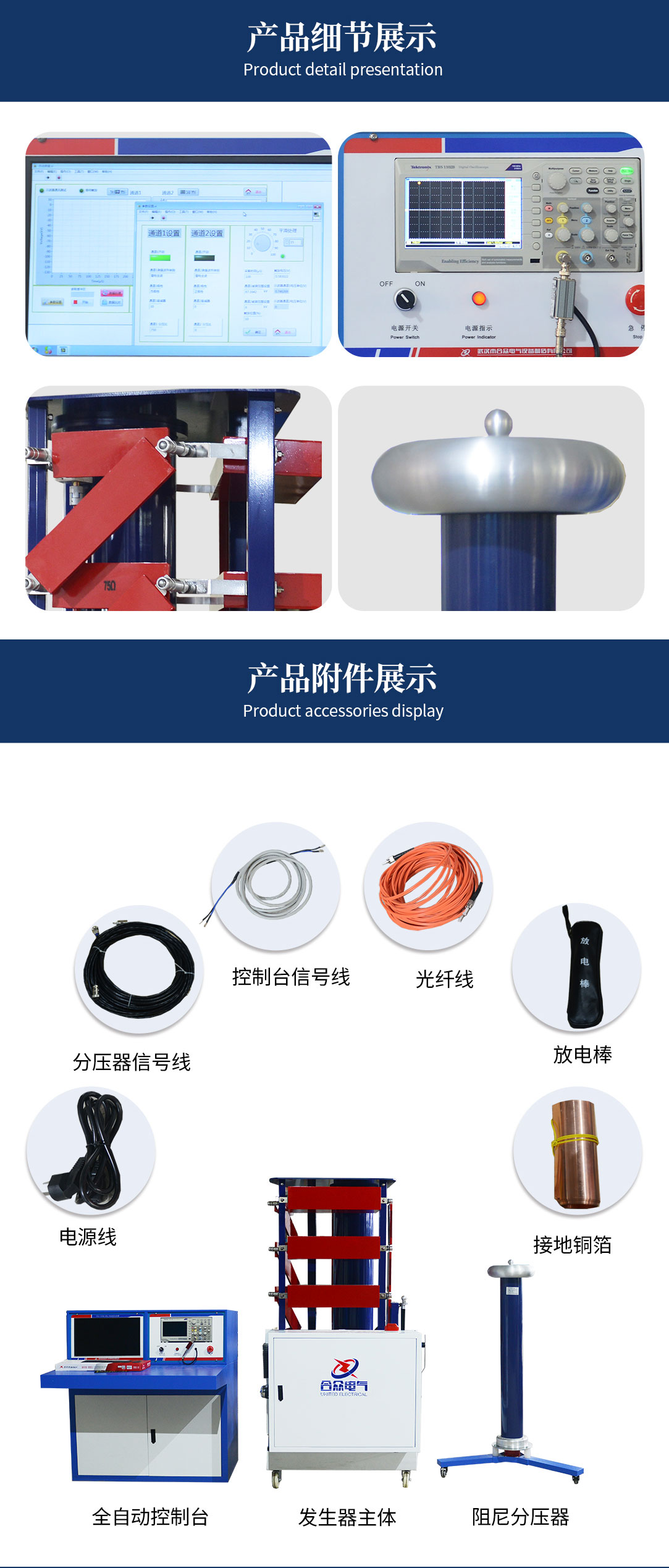 波頭時間:1.2±30%μs,波尾時間:50±20%μs,過沖:小于5%,效率:不低于90%?!?.2/50μs標(biāo)準(zhǔn)雷電沖擊電壓全波,效率大于90%。