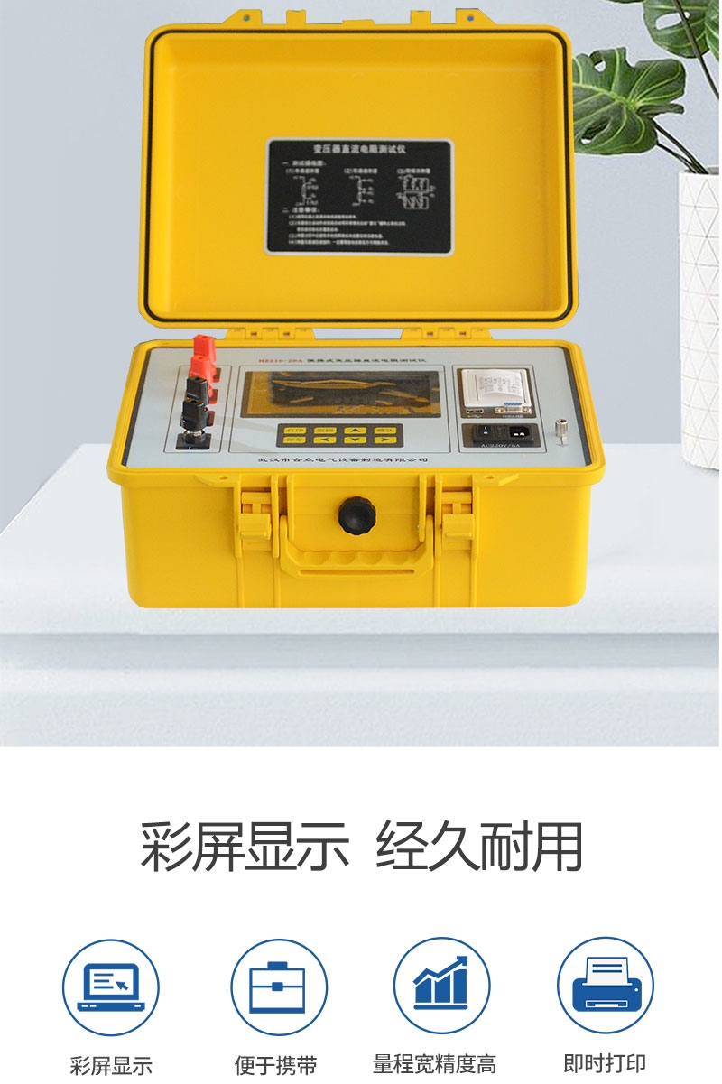 為了滿足感性線圈直流電阻快速測量的需要,武漢市合眾電氣利用自身技術(shù)優(yōu)勢研制了直流電阻測試儀。采用全新電源技術(shù), 具有體積小、重量輕、測試量程寬、抗干擾能力強、保護功能完善、大屏彩色液晶顯示等特點。整機由單片機控制,自動完成自檢、數(shù)據(jù)處理,具有自動放電和放電指示功能。儀器測試精度高,操作簡便,可實現(xiàn)直阻的快速測量。