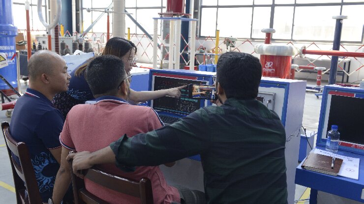 在武漢市合眾電氣技術(shù)團(tuán)隊(duì)的陪同下,孟加拉客戶深入?yún)⒂^了智能化生產(chǎn)車間與高壓實(shí)驗(yàn)室??蛻糁攸c(diǎn)觀摩了局部放電測試系統(tǒng)的現(xiàn)場演示,對(duì)其高精度檢測能力與抗干擾性能表示認(rèn)可;在沖擊電壓發(fā)生器測試區(qū),設(shè)備穩(wěn)定的波形輸出與模塊化設(shè)計(jì)引發(fā)了客戶濃厚興趣??蛻衄F(xiàn)場表示:"合眾電氣的全流程質(zhì)量控制體系與國際標(biāo)準(zhǔn)接軌,完全符合孟加拉電網(wǎng)試驗(yàn)項(xiàng)目的嚴(yán)苛要求。"